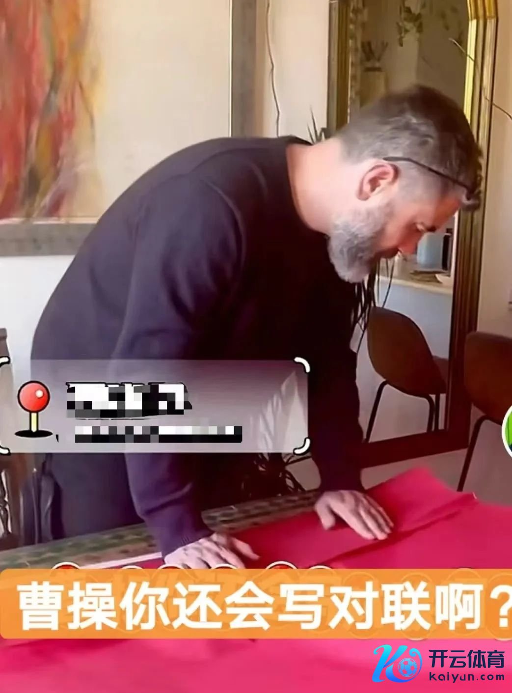 有一次恰恰中国的农历新年,曹操一家住在西班牙,他就张罗着叫一又友们一齐来看他写对子、贴对子,感受中国的新年习俗。