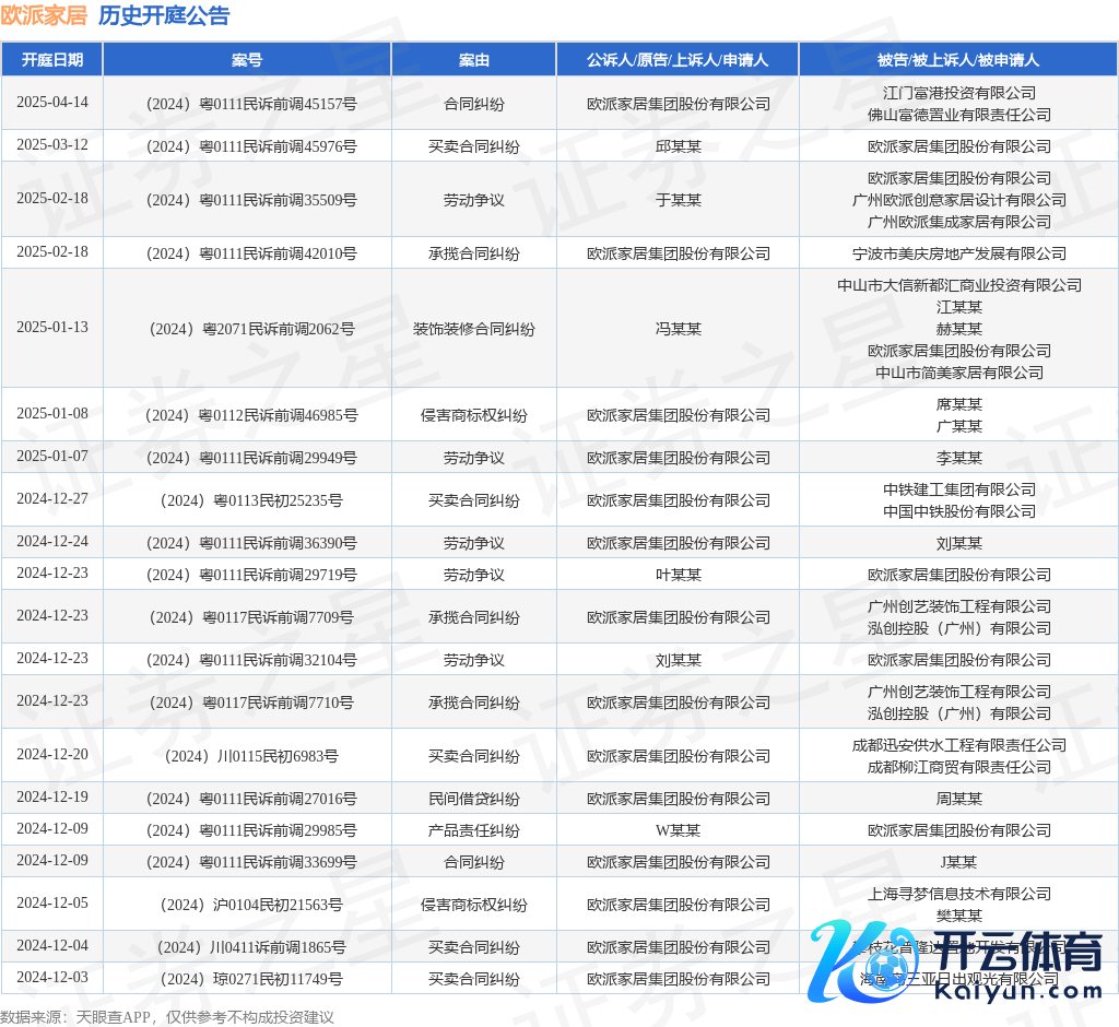 本站音信开云体育,凭证天眼查APP显现,近日公布了一则欧派家居集团股份有限公司四肢原告/上诉东谈主的开庭公告,正式本色如下: