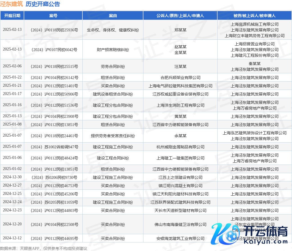 本站音信,凭据天眼查APP显现,近日公布了一则上海泾东建筑发展有限公司四肢被告/被上诉东谈主的开庭公告,详备骨子如下: