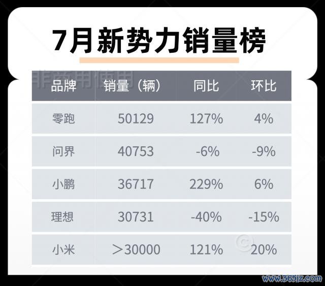 8 月初,中国各大车企不息公布了 7 月销量数据。比亚迪以 34.4 万辆的销量不息稳居榜首,但环比销量有所下降;零跑汽车初次冲破 5 万辆大关开yun体育网,以 50129 辆的托付量创下历史新高,同比增长 126%。这亦然新势力第一次月销量冲破 5 万大关。