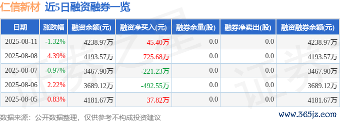 仁信新材融资融券信息披露,融资方面,当日融资买入1018.14万元,融资偿还972.74万元,融资净买入45.4万元。融券方面,融券卖出0.0股,融券偿还0.0股,融券余量0.0股,融券余额0.0万元。融资融券余额4238.97万元。