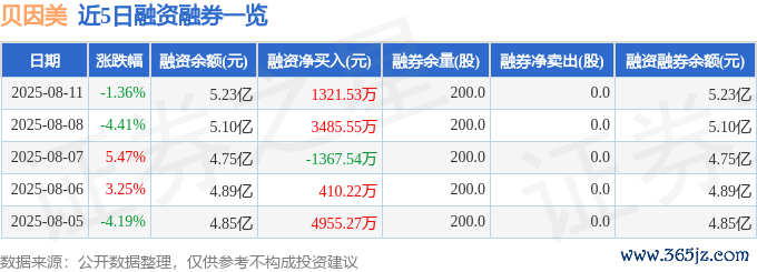 贝因好意思融资融券信息流露,融资方面,当日融资买入1.23亿元,融资偿还1.1亿元,融资净买入1321.53万元。融券方面,融券卖出0.0股,融券偿还0.0股,融券余量200.0股,融券余额0.15万元。融资融券余额5.23亿元。