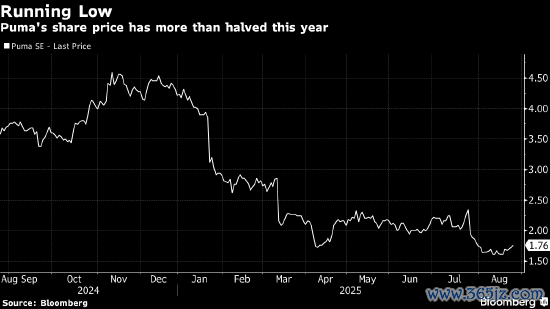 报说念发布后,彪马股价在德国阛阓一度飙升20%,创下2001年10月以来最大涨幅。公司市值约32亿欧元(37亿好意思元)。