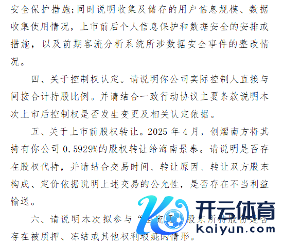 五、对于上市前股权转让。2025年4月,创熠南边将其握有你公司0.5929%的股权转让给海南景泰。请讲明是否存在股权代握,并请联接交过去候、转让原因、转让两边激动组成、订价依据讲明上述交往的公允性,是否存在不当利益运送。