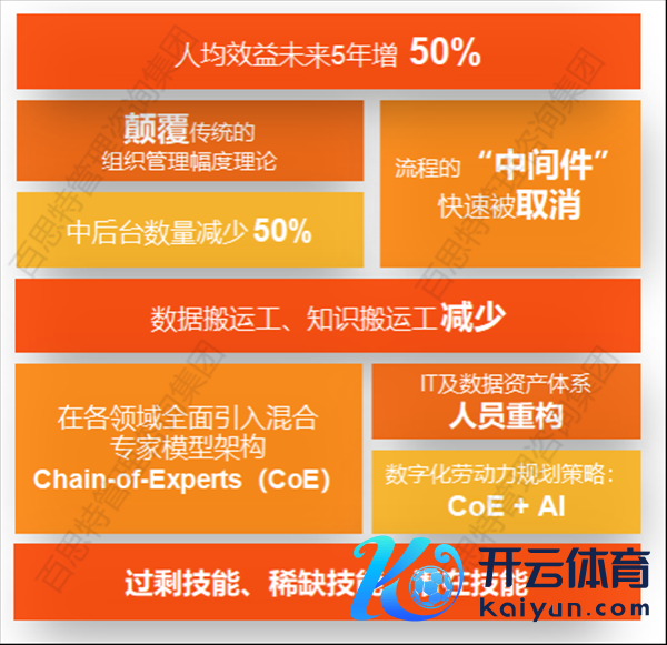 将来企业需冲破部门壁垒,构建“敏捷化、麇集化”的液态型组织。东谈主员与岗亭树立不再固定,而是随AI应用动态调整。比如畴昔依赖部门单干的业务,将转向跨领域协同,减少过程中的中间要领,升迁响应效力。
